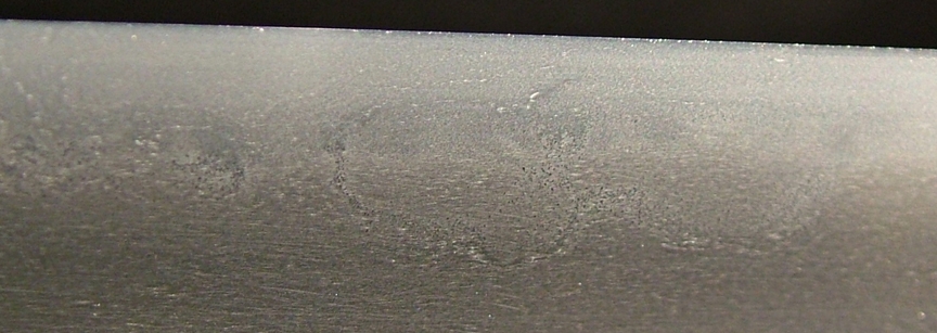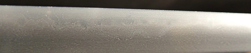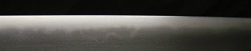This sword was well forged gendaito. The hada is ko-itame with some chikei seen, which is unusual for gendaito. The hamon beginning at the hamachi is ko-midare and and as it reaches the monouchi area transitions to a gentle ko-notare based on suguha.